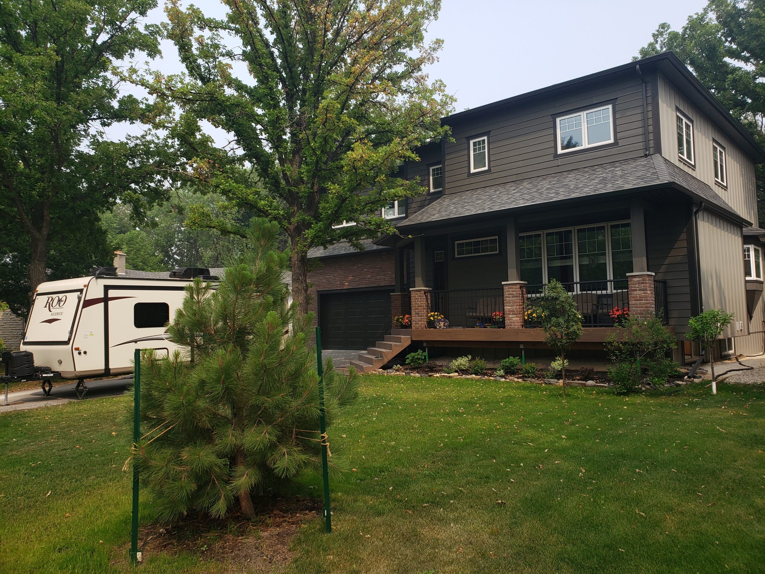 - Spacious and welcoming maintenance free front porch with composite decking, and a generous overhang.